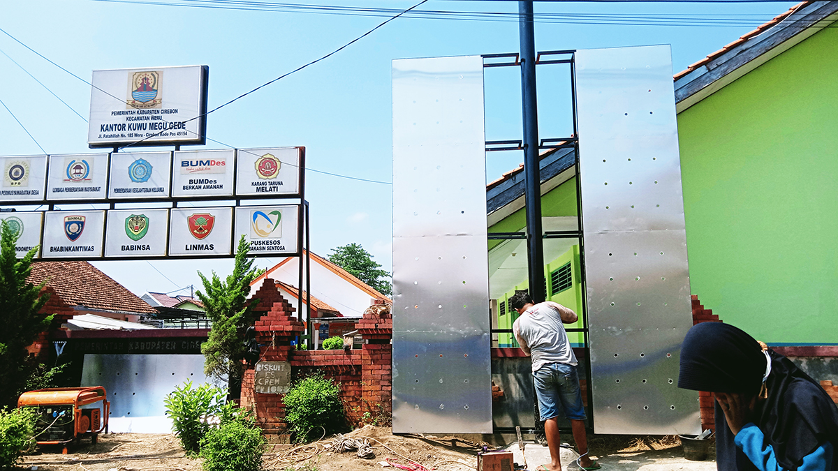 KABUPATEN CIREBON, SC- Pemerintah Desa (Pemdes) Megu Gede, Kecamatan Weru, Kabupaten Cirebon merealisasikan Bantuan Provinsi (Banprov) tahun 2021, salah satunya untuk pemasangan billboard.