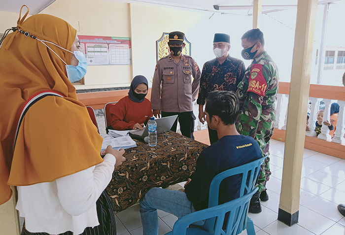 CIREBON, SC- Polres Cirebon Kota melaksanakan vaksinasi bagi warga di wilayah Pegagan Kidul, Kecamatan Kapetakan, Kabupaten Cirebon dalam rangka pemilihan kuwu serentak Kabupaten Cirebon 2021 agar terhindar dari Covid-19 sehingga tidak menimbulkan klaster baru. Kegiatan vaksinasi berlangsung di aula kantor desa setempat.