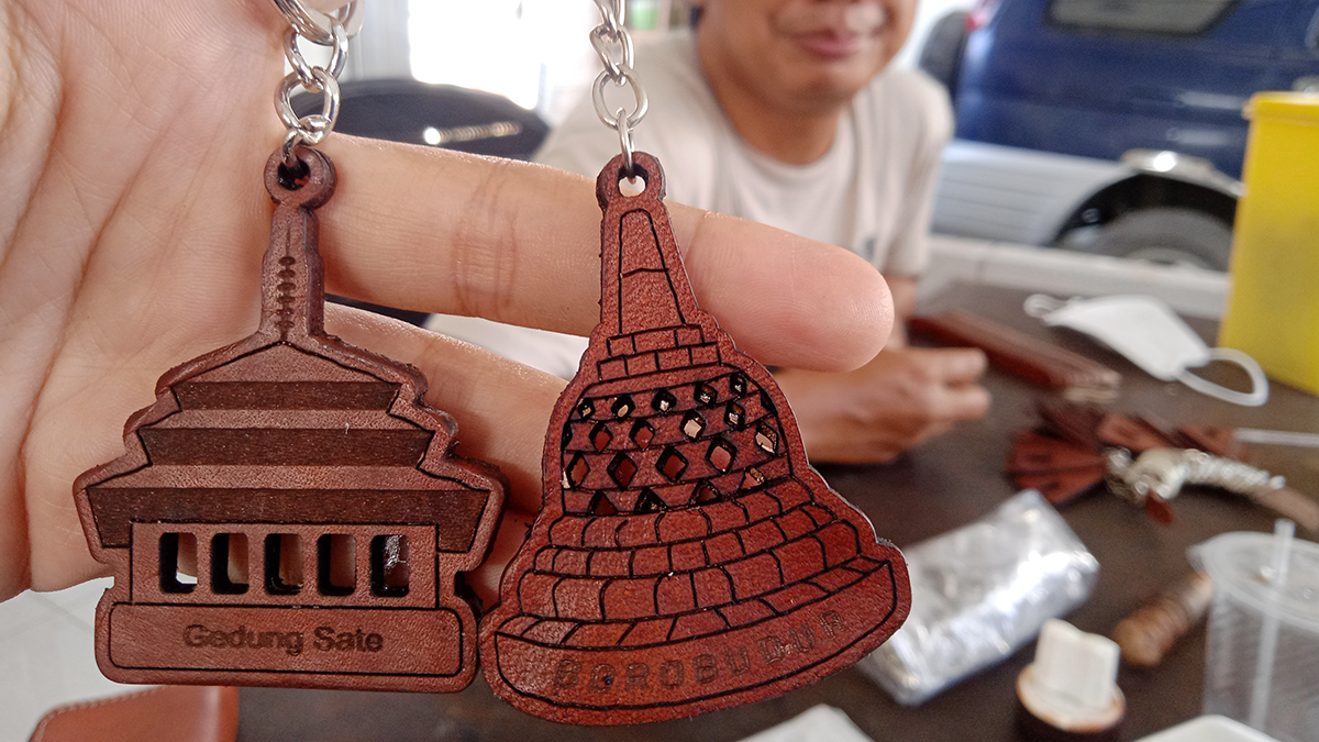 KABUPATEN CIREBON, SC- Optimis pariwisata bangkit pascapandemi berlalu, Ketua Ekonomi Kreatif Kabupaten Cirebon sekaligus owner dari Arli Craft, Gunawan menyiapkan pasar pariwisata baru. Salah satu upaya yang dilakukannya adalah membuat gantungan kunci dari kulit secara kustom.