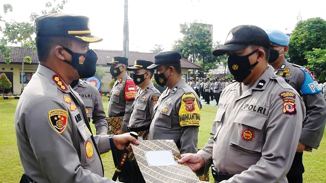 KABUPATEN CIREBON, SC- Sejumlah personel Polresta Cirebon yang dinilai berprestasi, berkontribusi dan berdedikasi tinggi diganjar penghargaan. Penghargaan diberikan langsung Kapolresta Cirebon, Kombes Pol Arif Budiman, di halaman Mapolresta setempat, Senin (11/10/2021).