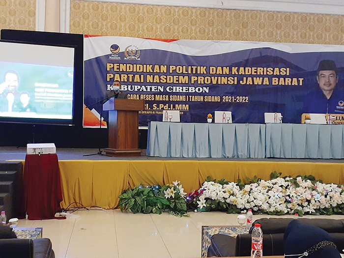 CIREBON, SC- DPD Partai Nasdem Kabupaten Cirebon menggelar pendidikan politik bagi seluruh pengurus DPC dan kader partai, dalam Kegiatan yang dilaksanakan di Ballroom Hotel Apita, Selasa (26/10/2021).