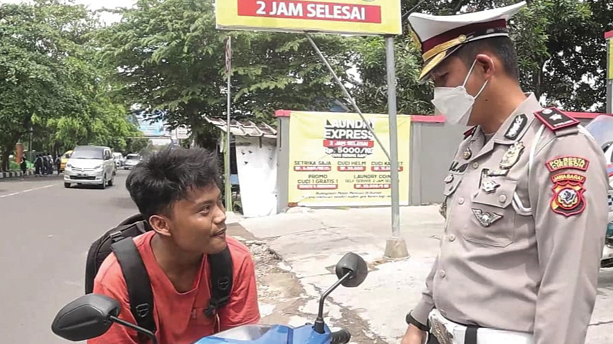 Begitupun, pada saat di lampu merah banyak ditemui pengemudi motor tak gunakan helm dan juga masker. Meski begitu, polisi hanya memberikan peringatan ringan atau tindakan preentif dan preventif.
