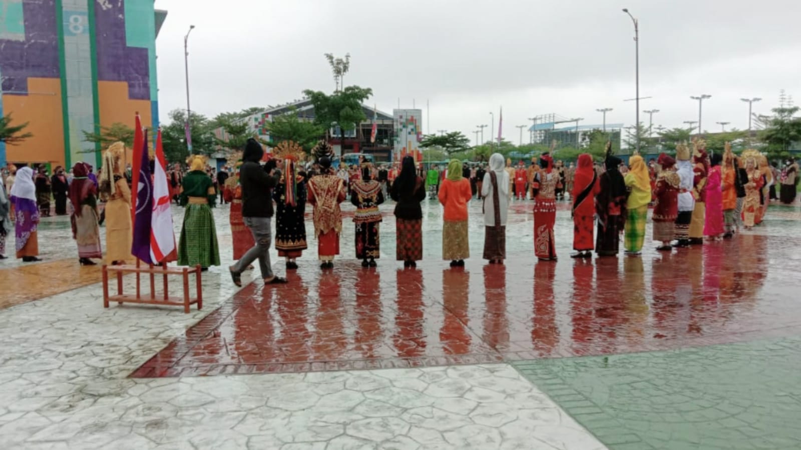 Guyuran hujan yang membahasi rumput di Lapangan Utama Jakabring, menciptakan suasana upacara terasa khudmat. Bahkan, nuansa kebangsaan hangat terasa.