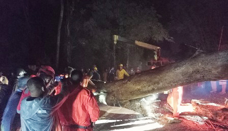 Proses evakuasi pohon dengan cara memotong dengan menggunakan gergaji mesin butuh waktu yang cukup lama, sehingga terjadi antrean panjang kendaraan dari arah Talaga maupun dari arah Cigasong.