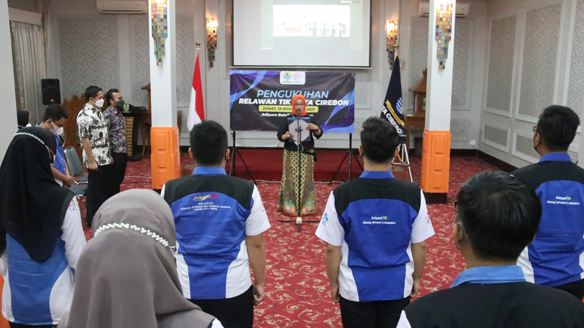 KOTA CIREBON, SC- Relawan Teknologi Informasi dan Komunikasi (RTIK) Kota Cirebon periode 2021-2025 resmi dilantik, di ruang Adipura Balai Kota Cirebon, Jumat (19/11/2021).
