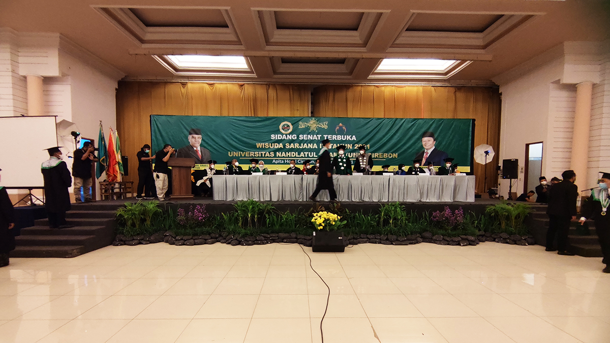 Perayaan sidang senat terbuka Wisuda Sarjana IV Tahun 2021 Universitas Nahdlatul Ulama (UNU) Cirebon berlangsung secara offline.