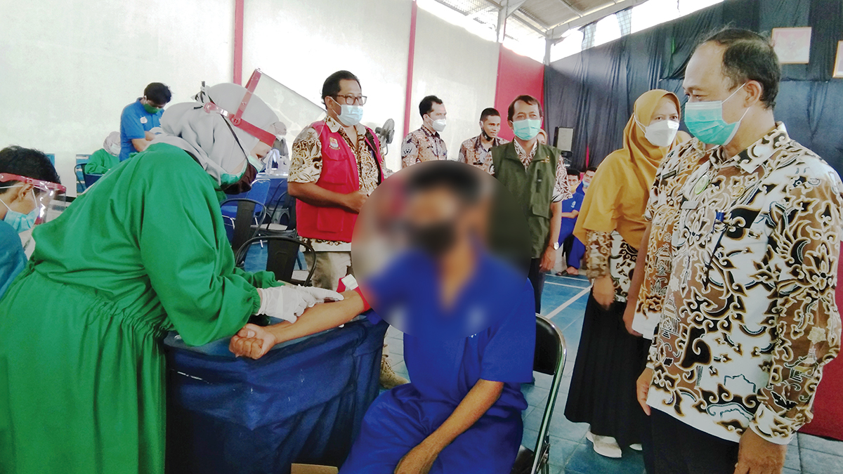 KABUPATEN CIREBON, SC- Sebanyak 400 warga binaan Lembaga Pemasyarakatan Khusus Narkotika (Lapasustik) Kelas IIA Gintung Cirebon menjalani pemeriksaan skrining HIV/AIDS yang dilakukan Dinas Kesehatan (Dinkes) Kabupaten Cirebon di lapas setempat, Kamis (9/12/2021).