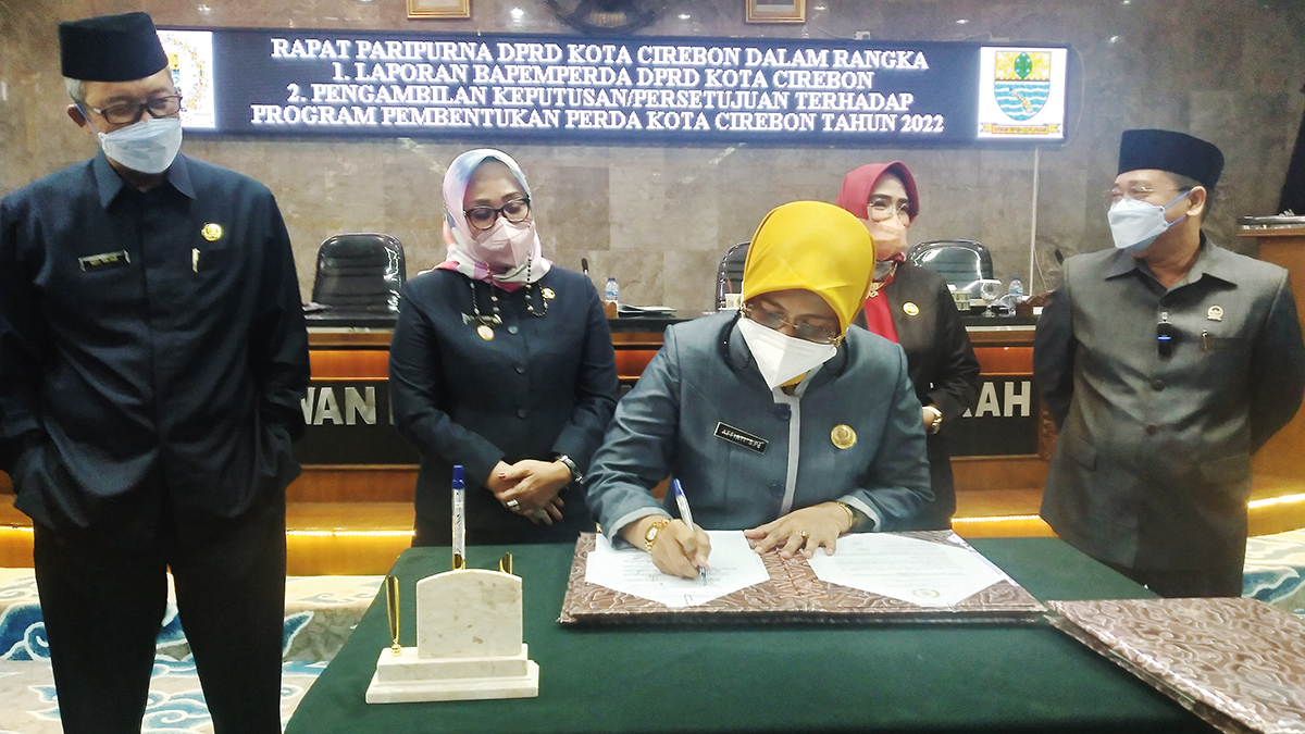 KOTA CIREBON, SC- DPRD Kota Cirebon menyepakati 20 rancangan peraturan daerah (raperda) masuk dalam Program Pembentukan Peraturan Daerah (Propemperda) tahun 2022. Penetapan ini dilakukan melalui rapat paripurna DPRD Kota Cirebon bersama Pemkot Cirebon di ruang rapat utama Griya Sawala Gedung DPRD setempat, Kamis (16/12/2021) siang kemarin.
