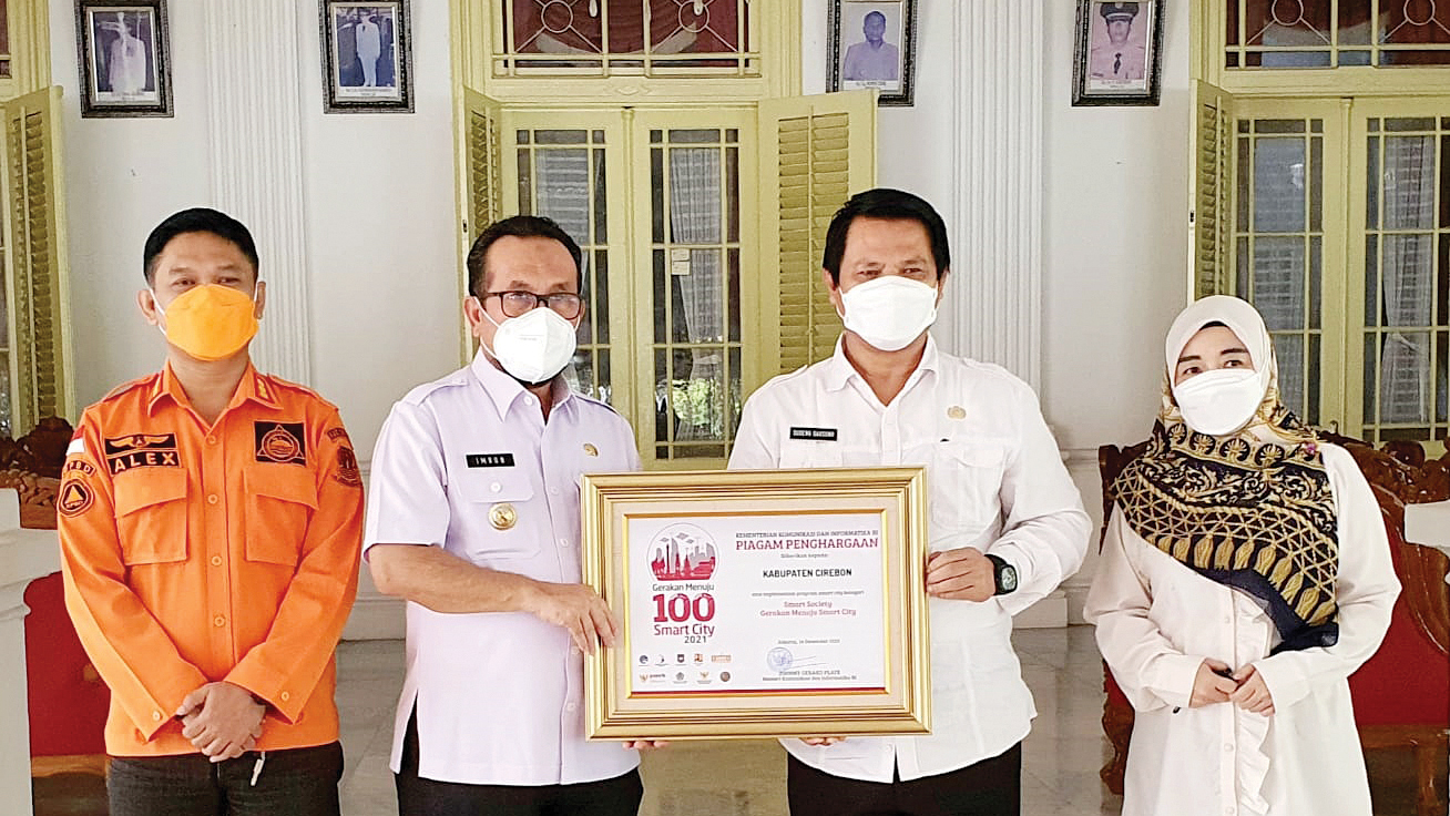 KABUPATEN CIREBON, SC- Pemerintah Kabupaten (Pemkab) Cirebon kembali mendapatkan penghargaan dalam bidang pengembangan smart city atau kota cerdas. Kali ini, Kabupaten Cirebon menjadi salah satu penerima Smart Society Award Gerakan Menuju 100 Kabupaten/Kota Smart City.