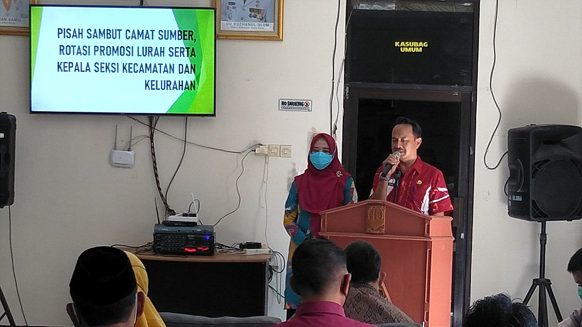 KABUPATEN CIREBON, SC- Pemerintah Kecamatan Sumber, Kabupaten Cirebon, melaksanakan pisah sambut camat, dari Iman Santoso kepada Teguh Supriyadi, Jumat (7/1/2022).
