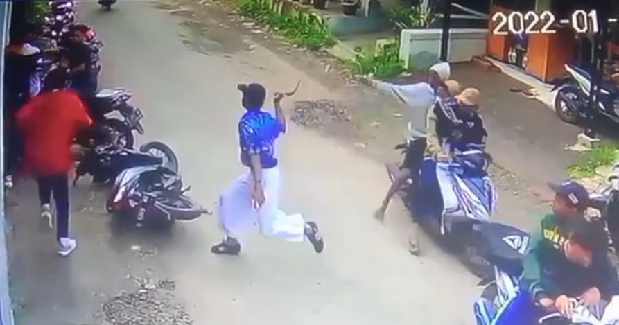 Sebelumnya beredar di berbagai media sosial ada pelajar yang mengacungkan senjata tajam ke arah pelajar lainnya, dan kejadian itu terjadi di siang hari saat masyarakat berlalu lalang. (SC/Kir)