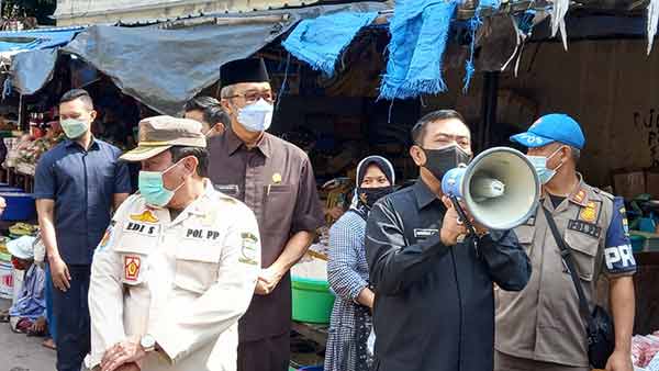 Sidak Prokes yang dilakukan Wali Kota Cirebon Nashrudin Azis beserta Satgas Covid-19 di dua pasar tradisional yakni, Pasar Kanoman dan Pasar Pagi. (Surya)