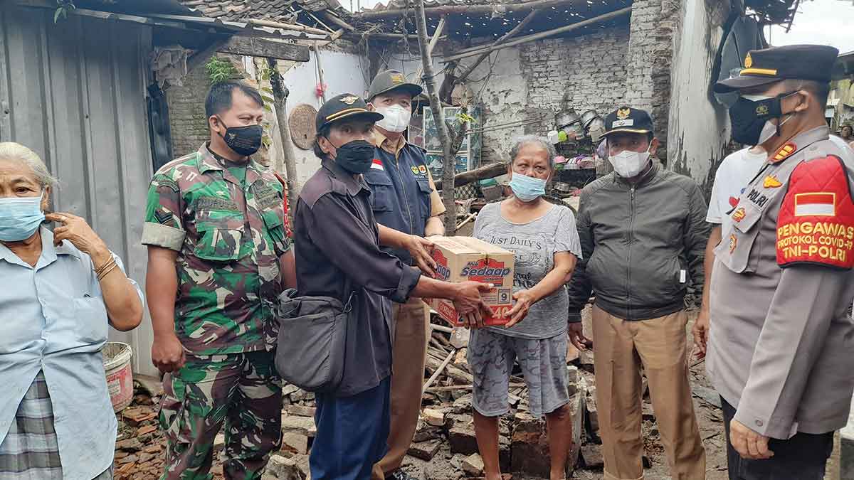 Selain meninjau kondisi rumah warga yang ambruk, dalam kunjungan tersebut, Muspika Klangenan memberikan bantuan sembako kepada pemilik rumah yang merupakan janda kategori warga lanjut usia.