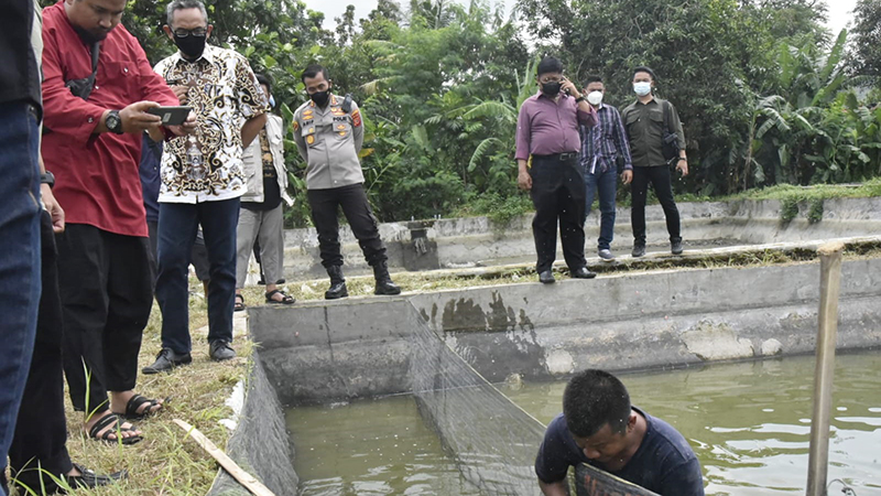 KABUPATEN CIREBON, SC- Kapolresta Cirebon, Kombes Pol Arif Budiman, Smenghadiri panen raya ikan air tawar hasil budidaya eks narapidana teroris (napiter) di Desa Dukupuntang, Kecamatan Dukupuntang, kabupaten Cirebon, Kamis (10/2/2022).