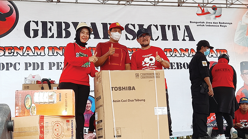 KABUPATEN CIREBON, SC- DPC PDI Perjuangan Kabupaten Cirebon menggelar Senam Indonesia Cinta Tanah Air (Sicita) di Lapangan Bola Desa Tegalsari, Kecamatan Plered, Minggu (13/2/2022).