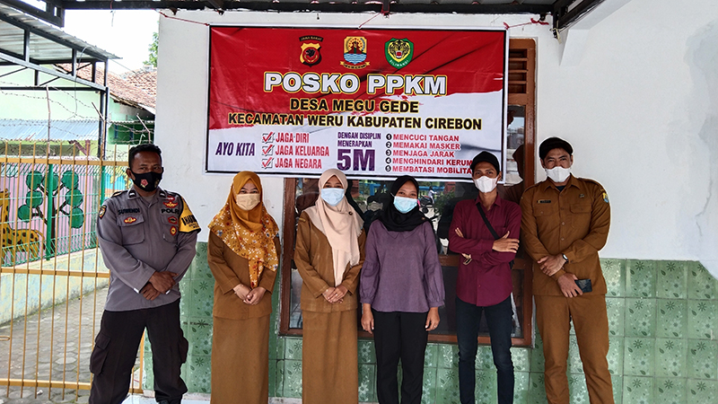KABUPATEN CIREBON, SC- Tim Satuan Tugas Penanganan Covid-19 Desa Megu Gede, Kecamatan Weru, Kabupaten Cirebon, melakukan sosialisasi kepada masyarakat desa setempat terkait peraturan PPKM level 2 skala mikro.