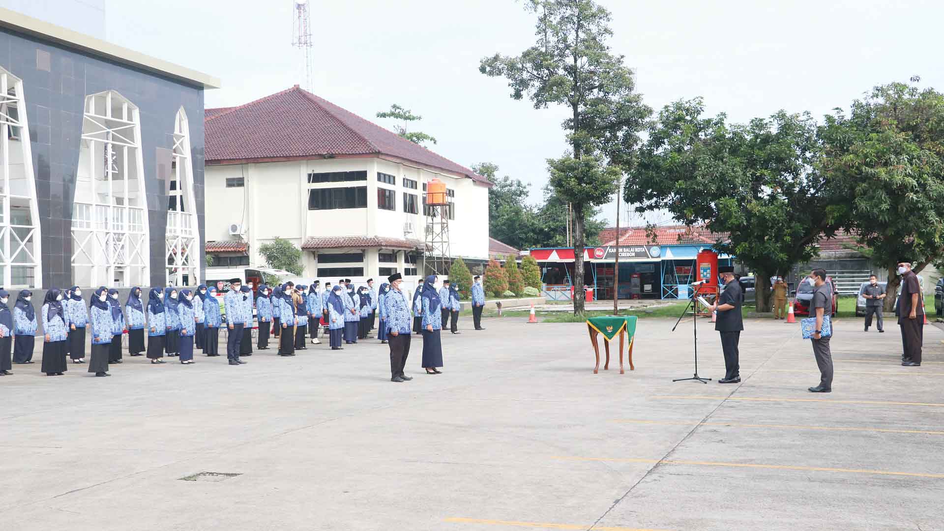 KOTA CIREBON, SC- Sebanyak 105 Pegawai Pemerintah dengan Perjanjian Kerja (P3K) pendidikkan dilantik Walikota Cirebon Nashrudin Azis pada tahap satu, di halaman Balai Kota Cirebon, Senin (21/2/2022).