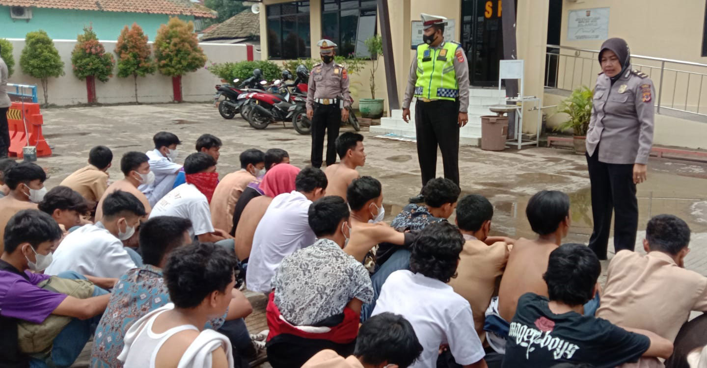 KABUPATEN CIREBON, SC- Sebanyak 32 pelajar diamankan di sekitaran lampu merah Weru, Kabupaten Cirebon, Jumat (4/3/2022).
