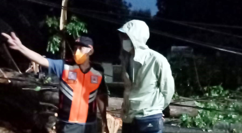 “Jenis yang tumbang yaitu pohon mangga dengan diameter sekitar 30 cm dan tinggi sekitar 6 meter dan menghalangi jalan. Kami mengimbau untuk berhati-hati,” katanya.