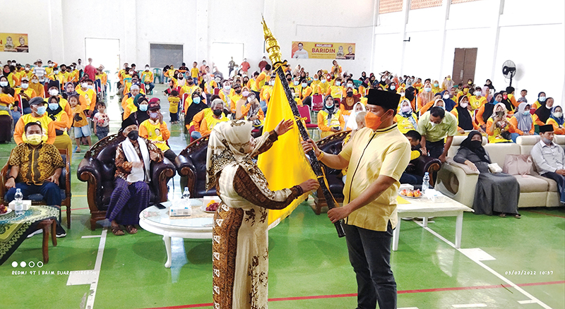 KABUPATEN CIREBON, SC- Relawan Barisan Airlangga untuk Indonesia (Baridin) Kabupaten Cirebon menggelar deklarasi dukungan kepada Airlangga Hartarto untuk menjadi Presiden Indonesia 2024 mendatang, di GOR Pesantren Buntet, Kecamatan Astanajapura, Kabupaten Cirebon, Sabtu (5/3/2022).