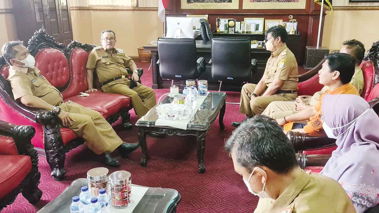 KABUPATEN CIREBON, SC- Bupati Cirebon, H Imron langsung mengumpulkan sejumlah pejabat di ruang kerjanya, membahas persoalan banjir dan tanah bergerak yang terjadi dalam beberapa hari terakir di sejumlah wilayah Kabupaten Cirebon, Selasa (8/3/2022).