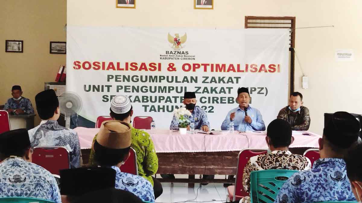 KABUPATEN CIREBON, SC- Badan Amil Zakat Nasional (Baznas) Kabupaten Cirebon melaksanakan kegiatan sosialisasi Unit Pengumpulan Zakat (UPZ) desa se-Kabupaten Cirebon tahun 2022 yang dilangsungkan di aula kantor Kecamatan Plered, Kamis (17/3/2022).