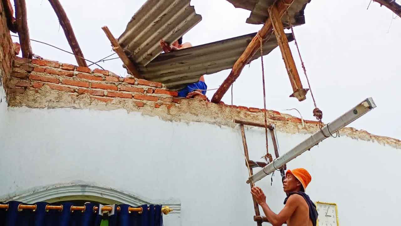 KABUPATEN CIREBON, SC- Hujan disertai angin puting beliung kembali menerjang Desa Mayung, Kecamatan Gunungjati, Kabupaten Cirebon, Ahad (20/3/2022). Peristiwa yang terjadi sekitar pukul 15.30 WIB itu telah mengakibatkan puluhan rumah warga mengalami rusak ringan hingga rusak sedang.