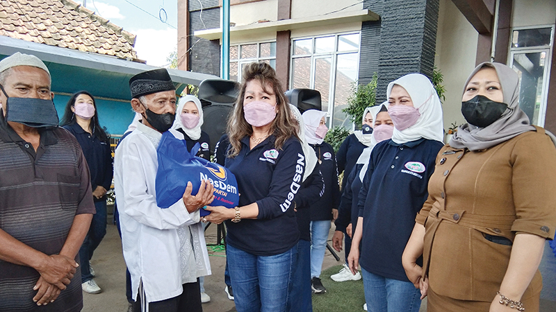 KABUPATEN CIREBON, SC- Persudaraan Istri Anggota (PIA) DPR RI Fraksi Partai NasDem periode 2019-2024 membagikan 500 paket sembako kepada warga kurang mampu di Desa Panongan, Kecamatan Palimanan, Kabupaten Cirebon, Senin (28/3/2022).