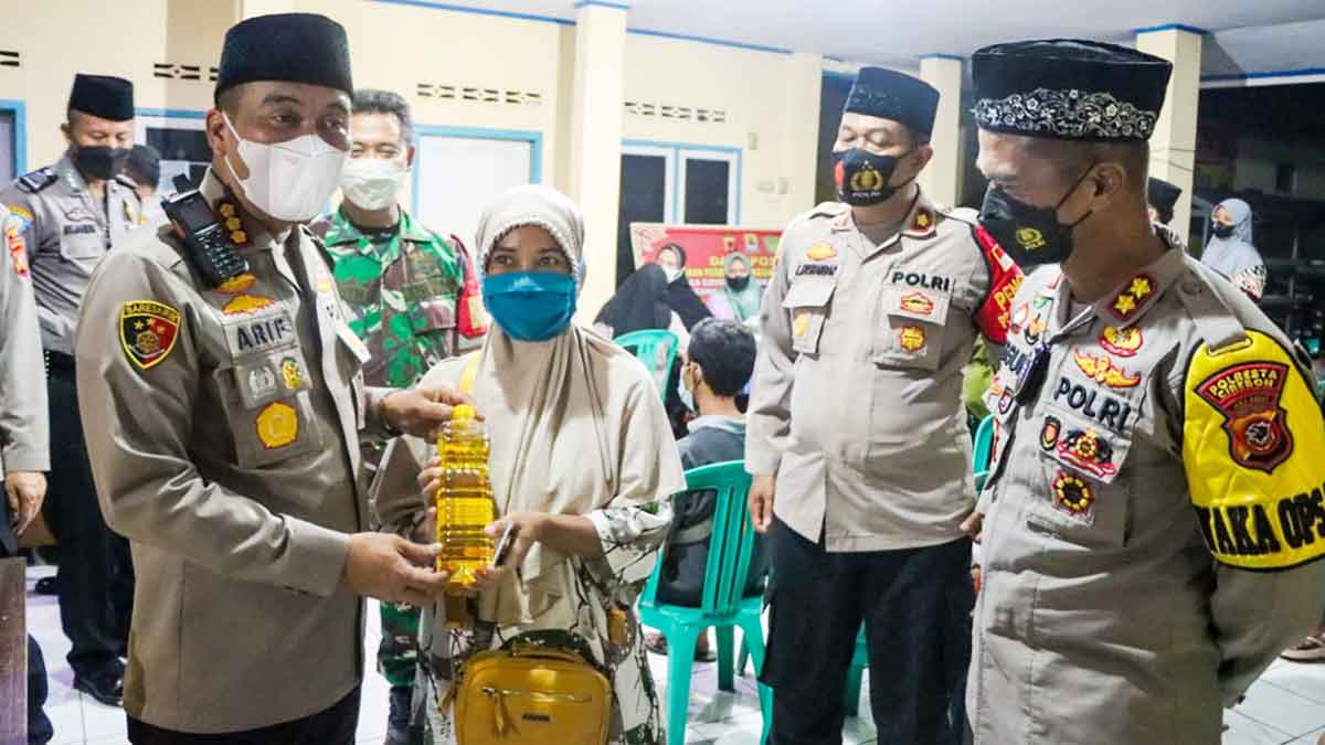 KABUPATEN CIREBON, SC- Polresta Cirebon bekerjasama dengan Puskesmas setempat menyiapkan 100 liter minyak goreng (migor) kemasan dalam kegiatan vaksinasi di Balai Desa Weru Lor, Kecamatan Weru, Kabupaten Cirebon, Selasa (5/4/2022) malam.