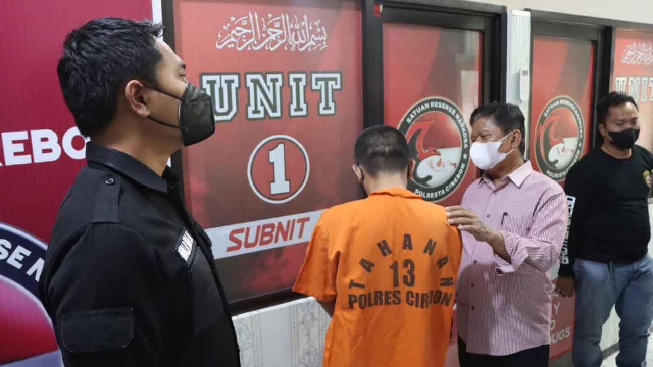 “Tersangka tertangkap tangan oleh petugas pada hari Kamis (17/03/2022) sekitar pukul 14.30 WIB. AS tertangkap tangan tak berkutik oleh petugas TKP di pinggir jalan Rahayu Desa Kesugengan lor Kecamatan Depok Kabupaten Cirebon,” kata Kasatnarkoba Polresta Cirebon saat gelar perkara di makopolresta setempat, Kamis (7/4/2022) sore.