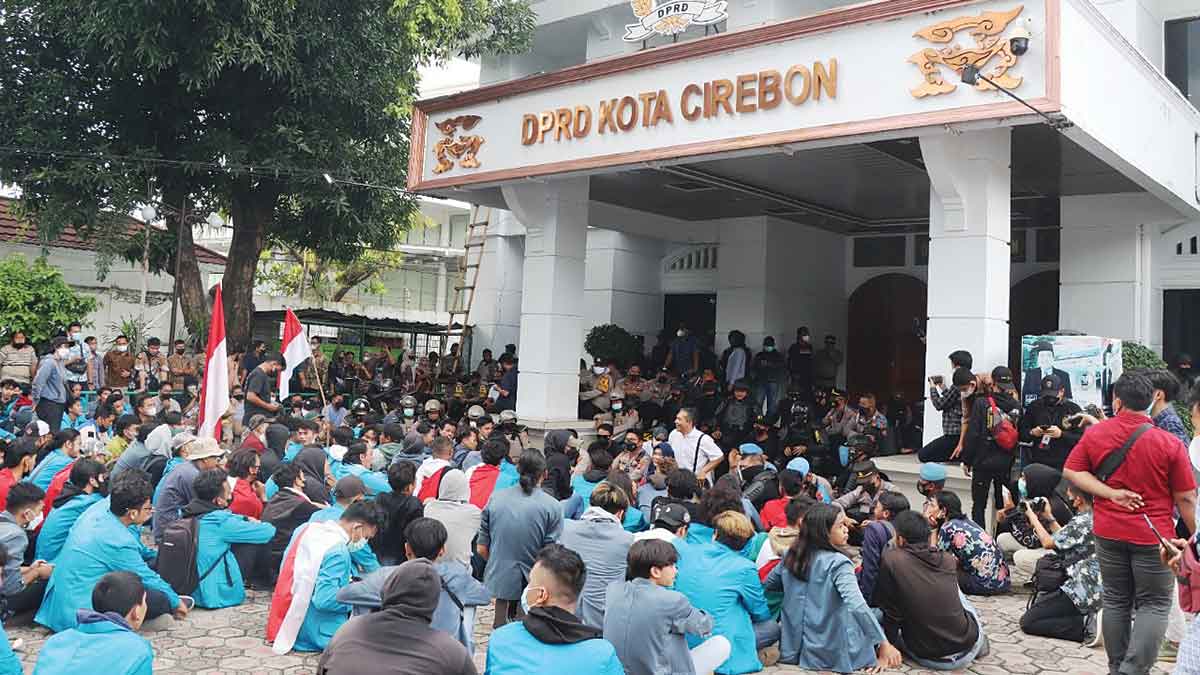 KOTA CIREBON, SC- Ratusan mahasiswa Cirebon yang tergabung dalam Aliansi Mahasiswa dan Rakyat Peduli Cirebon melakukan aksi unjuk rasa di depan Kantor DPRD Kota Cirebon, Kamis (7/4/2022).
