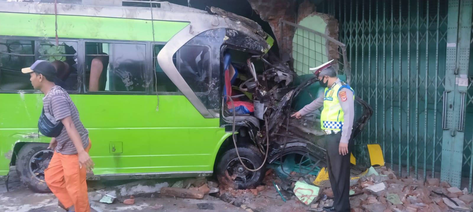 Kemudian, jelas Hadi, kendaraan mikrobus elf tersebut oleng dan menabrak sebuah toko serta sepeda motor Yamaha Jupiter MX tanpa Tanda Nomor Kendaraan Bermotor (TNKB) yang sedang terparkir di kiri jalan.