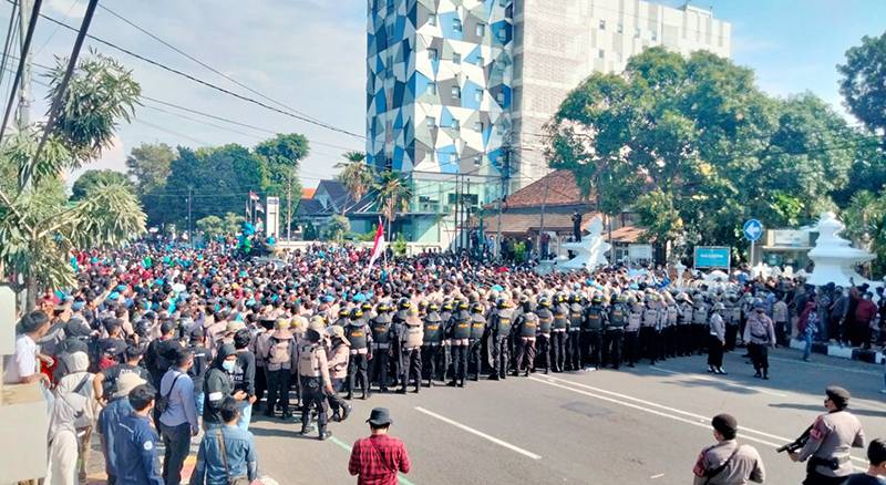 “Mahasiswa menuntut pemerintah menurunkan harga BBM, sembako, pajak, dan menolak Rancangan Undang-undang (RUU) Ibu Kota Negara (IKN),” kata salah seorang koordinator aksi.