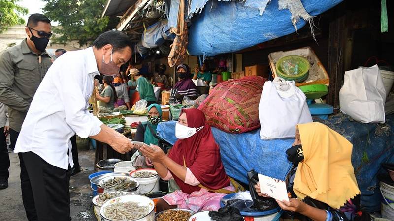 Menurut Jokowi, saat ini kasus Covid-19 di Indonesia sudah melandai, sehingga para pedagang sudah memulai usahanya kembali di pasar-pasar. Untuk itu, bantuan-bantuan tersebut dibagikan sebagai tambahan modal usaha.