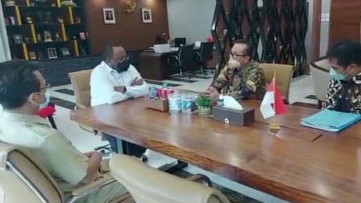 KABUPATEN CIREBON, SC- Bupati Cirebon, Drs Imron MAg bersama Bappelitbangda serta Dinas Pekerjaan Umum dan Tata Ruang (PUTR) Kabupaten Cirebon bertemu Wakil Menteri (Wamen) Pekerjaan Umum dan Perumahan Rakyat (PUPR), Jhon Wempi Wetipo, Selasa (19/4/2022).