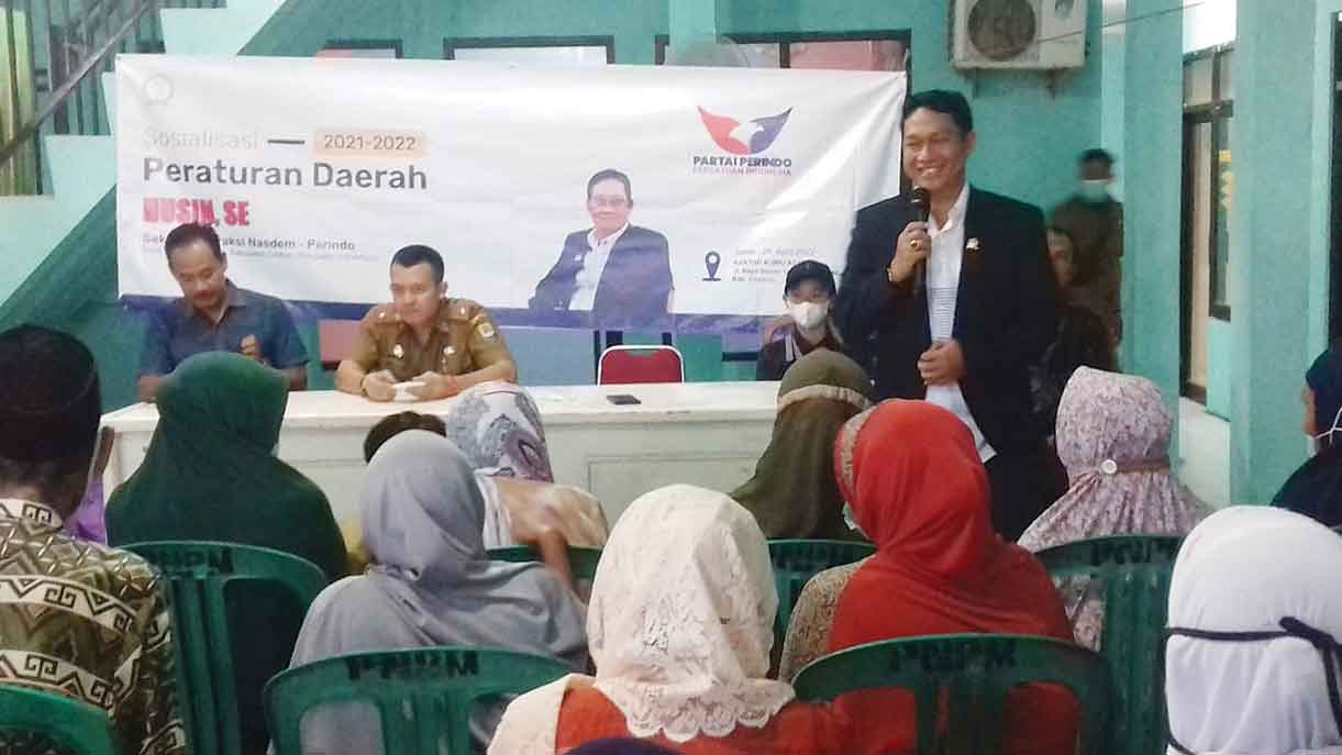 Selain sosialisasi Perda erlindungan Pekerja Migran, Husin juga membagikan paket sembako kepada masyarakat yang membutuhkan.