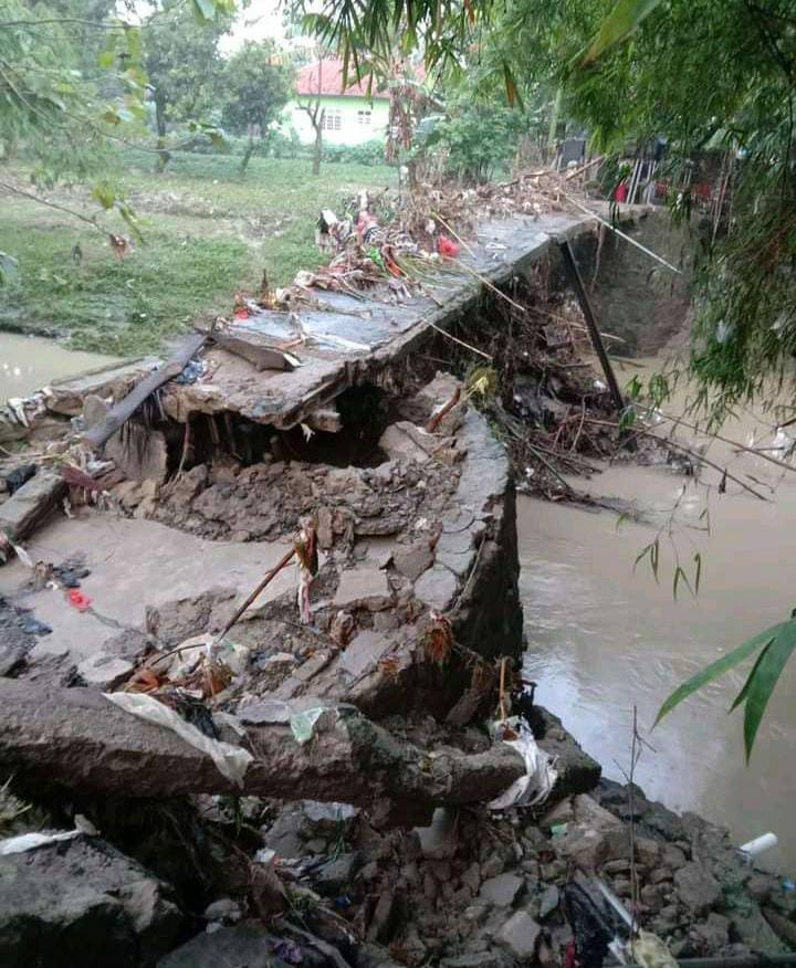 KABUPATEN CIREBON, SC- Hujan deras yang terjadi pada Senin (9/5/2022) sore telah menyebabkan Sungai Soka meluap. Akibatnya, jembatan di Blok Nyimas RT 05 RW 01 Desa Kedungsana, Kecamatan Plumbon, Kabupaten Cirebon ambruk.