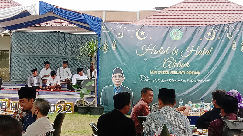 CIREBON, SC- Sivitas akademika Institut Agam Islam Negeri (IAIN) Syekh Nurjati Cirebon menggelar halalbihalal pascalibur panjang Idulfitri 1443 H bertema “Sucikan Hati, Erat Silaturahim Pascapandemi” di halaman gedung Ma’had kampus setempat, Kamis (12/5/2022).