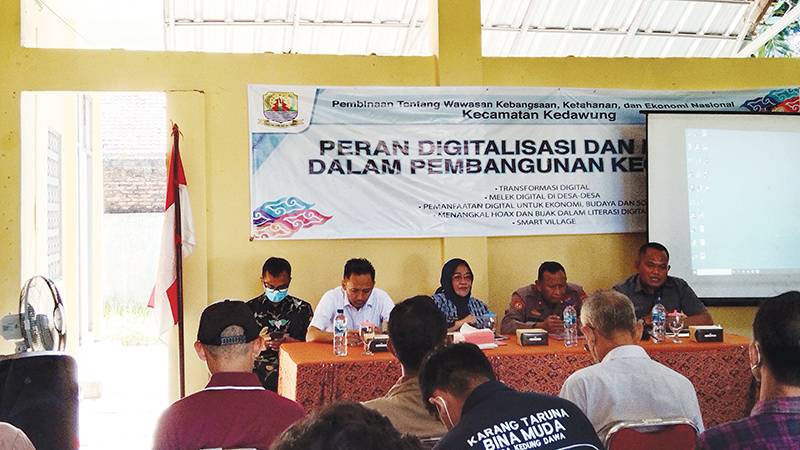 kegiatan Pembinaan tentang Wawasan Kebangsaan, Ketahanan dan Ekonomi Nasional dengan tema Peran Digitalisasi dan Literasi Dalam Pembangunan Kecamatan itu dihadiri para kuwu, Karang Taruna Kecamatan Kedawung dan lainnya. (Vicky)