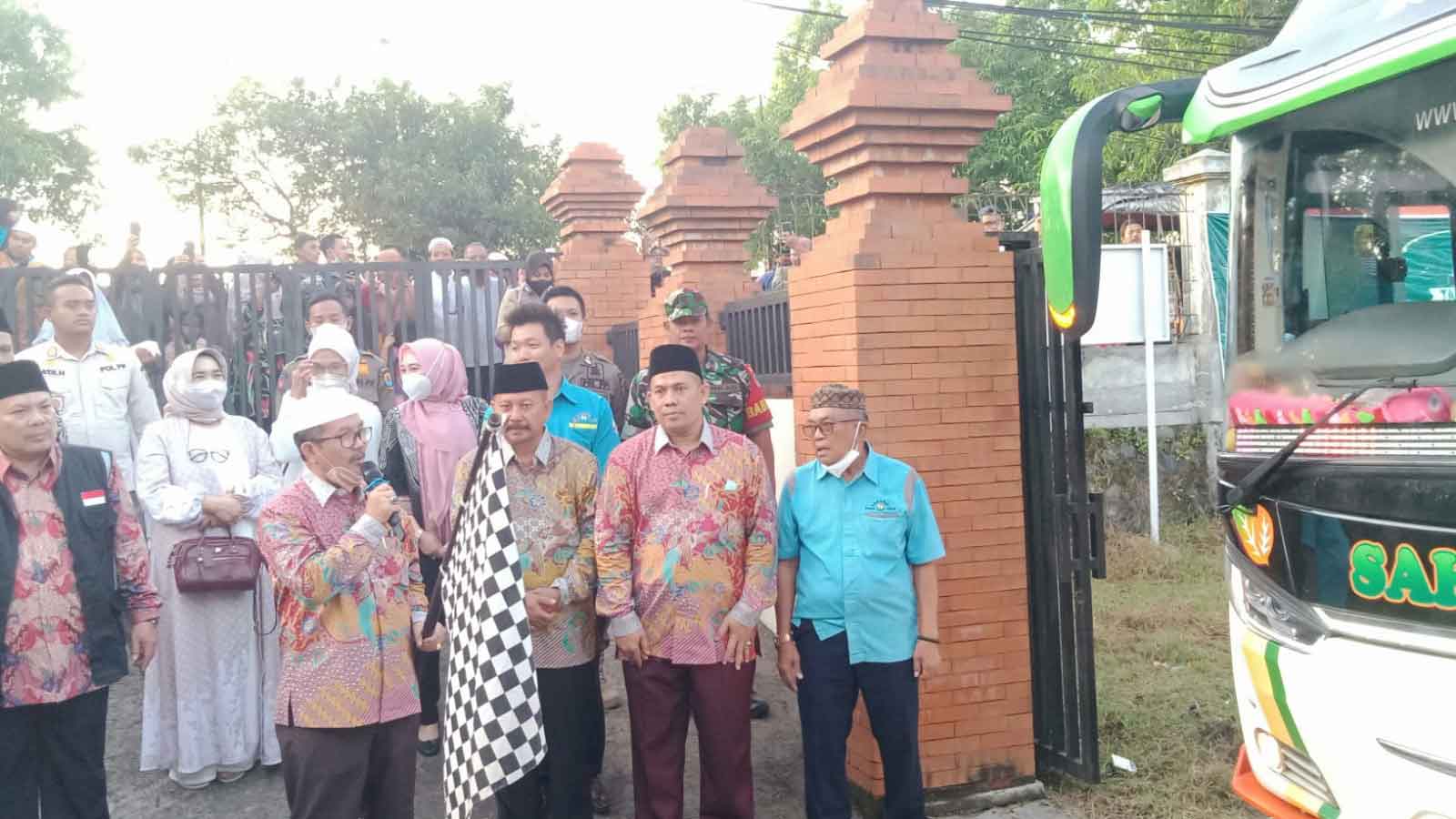 KABUPATEN CIREBON, SC- Sebanyak 404 calon jemaah haji Kabupaten Cirebon diberangkatkan hari ini, Jumat (3/6/2022). Keberangkatan perdana calon haji (calhaj) yang masuk kelompok terbang (kloter) kedua tersebut dilepas Bupati Cirebon, H Imron MAg di Asrama Haji Watubelah, Sumber.