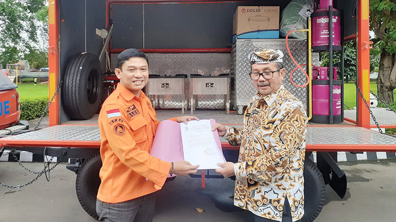 BADAN Nasional Penanggulangan Bencana (BNPB) memberikan bantuan satu unit mobil trailer dapur umum lapangan kepada Pemerintah Kabupaten (Pemkab) Cirebon. Penyerahan bantuan dilakukan di Pendopo Bupati Cirebon, Jalan Kartini, Kota Cirebon dan diterima langsung Bupati Cirebon, H Imron, Kamis (9/6/2022).