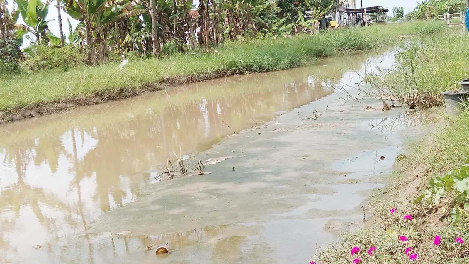 KABUPATEN CIREBON, SC- Sedimentasi sungai irigasi yang melintas di wilayah Desa Prajawinangun Kulon-Prajawinangun Wetan, Kecamatan Kaliwedi, Kabupaten Cirebon sudah sangat tinggi hingga hampir menyamai tinggi tanggulnya.