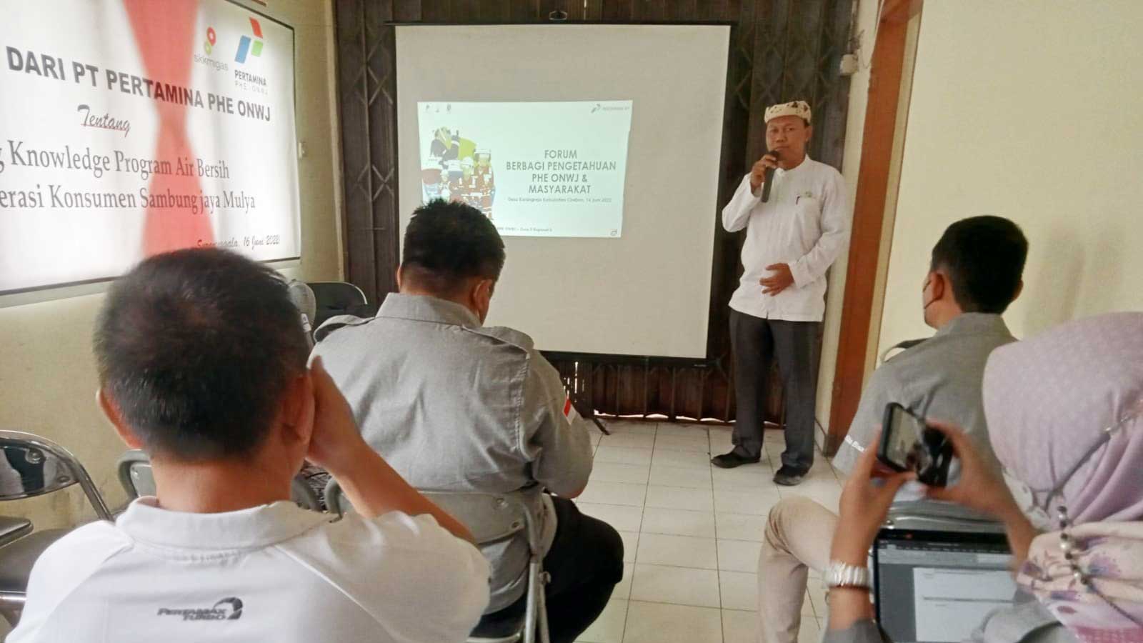 KABUPATEN CIREBON, SC– Tim PT Pertamina Hulu Energi Offshore North West Jawa (PHE ONWJ) mengadakan kegiatan sharing knowledge (berbagi pengetahuan, red) program air bersih di Tempat Pelelangan Ikan (TPI) Koperasi Konsumen Sambung Jaya Mulya Desa Karangreja, Kecamatan Suranenggala, Kabupaten Cirebon.