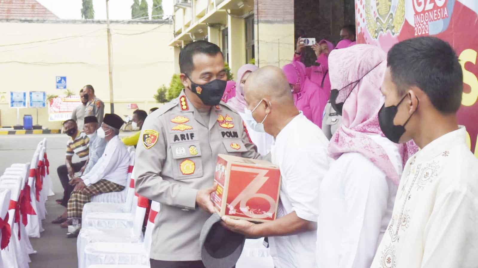 Polresta Cirebon melaksanakan kegiatan tersebut di halaman Mapolresta setempat. Kapolresta Cirebon, Kombes Pol Arif Budiman, didampingi Ketua Bhayangkari Cabang Kota Cirebon, Ny. Tia Arif Budiman, beserta Wakapolresta Cirebon, AKBP Teguh Triwantoro, didampingi Wakil Ketua Cabang Bhayangkari Kota Cirebon, Ny. Ifa Teguh Triwantoro dan jajaran PJU Polresta Cirebon menyerahkan bantuan secara simbolis kepada perwakilan masyarakat.