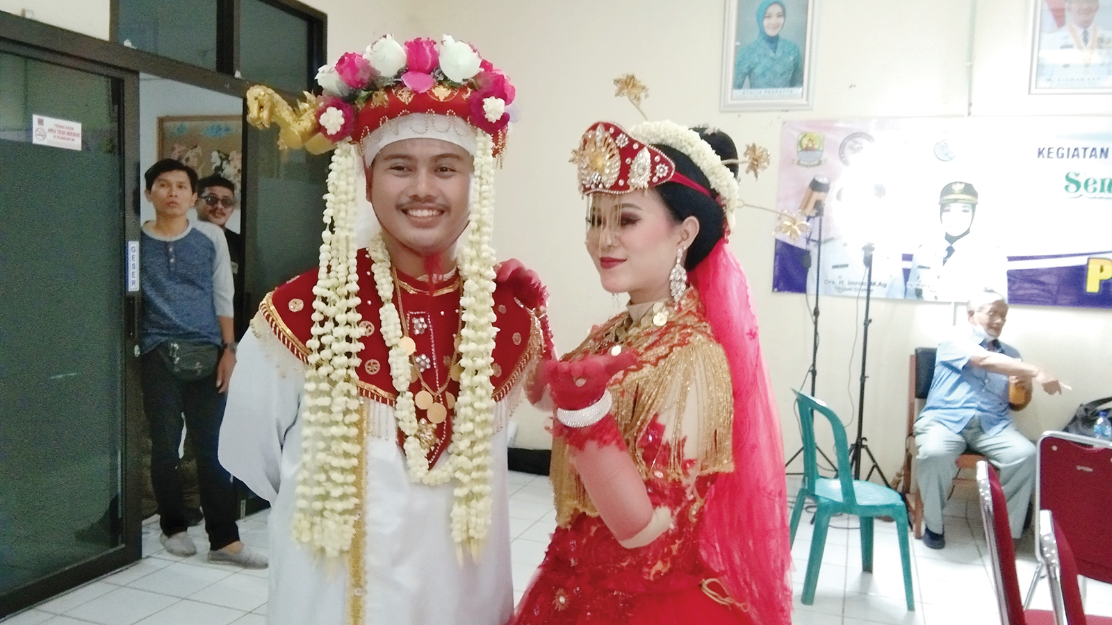 SEPASANG pengantin tampak mengenakan busana khas bergaya klasik yang jarang terlihat sebelumnya. Mereka mengenakan salah satu busana adat peninggalan Kerajaan Cirebon tempo dulu. Pengenalan busana adat peninggalan Kerajaan Cirebon itu dilakukan Dinas Kebudayaan dan Pariwisata (Disbudpar) Kabupaten Cirebon, dalam seminar yang digelar di aula Disbudpar setempat Selasa (21/6/2022).