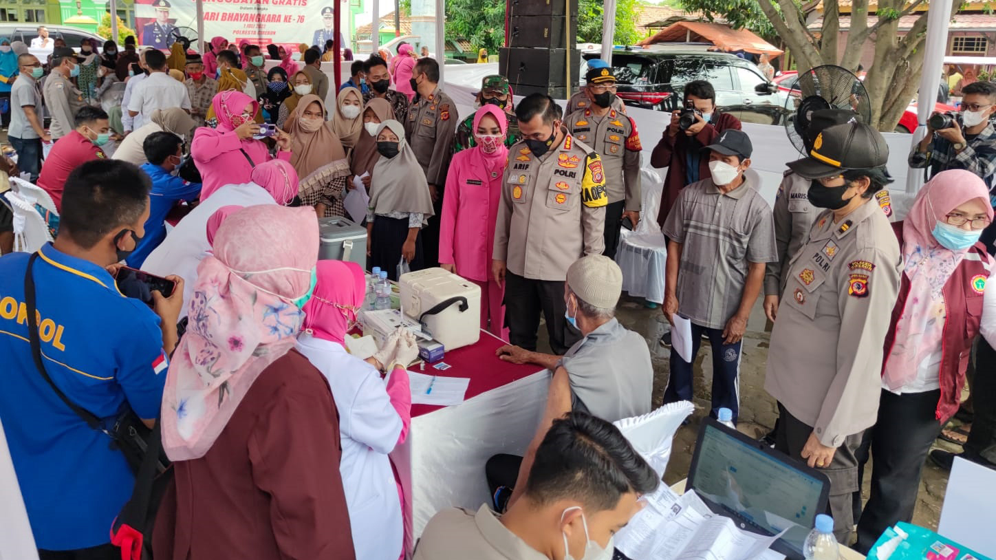 Kapolresta Cirebon, Kombes Pol Arif Budiman, menyampaikan, ada beberapa kegiatan yang digelar dalam kegiatan tersebut, di antaranya vaksinasi Covid-19, pemeriksaan kesehatan gratis, penyaluran bantuan sosial dan kegiatan sosial lainnya.