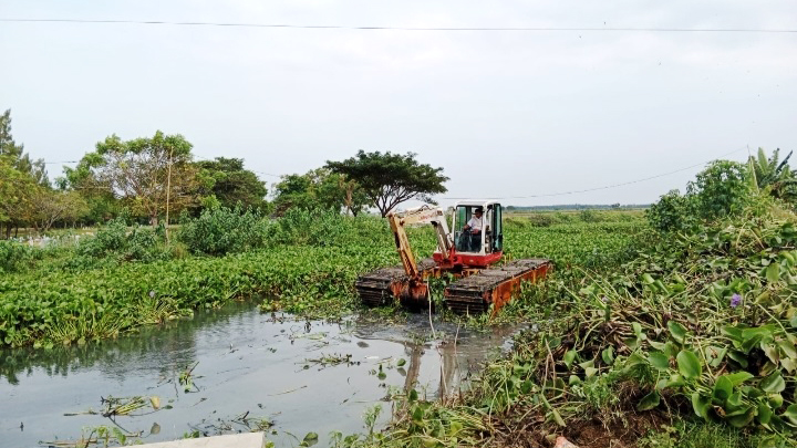 “Normalisasi dengan membersihkan tanaman eceng gondok tersebut dimaksudkan agar aliran air kali menjadi lancar dan tidak terjadi endapan, yang mengakibatkan aliran air terhambat sehingga bisa berakibat meluapnya air ke permukiman warga,” kata Suyatno, Kamis (23/6/2022).