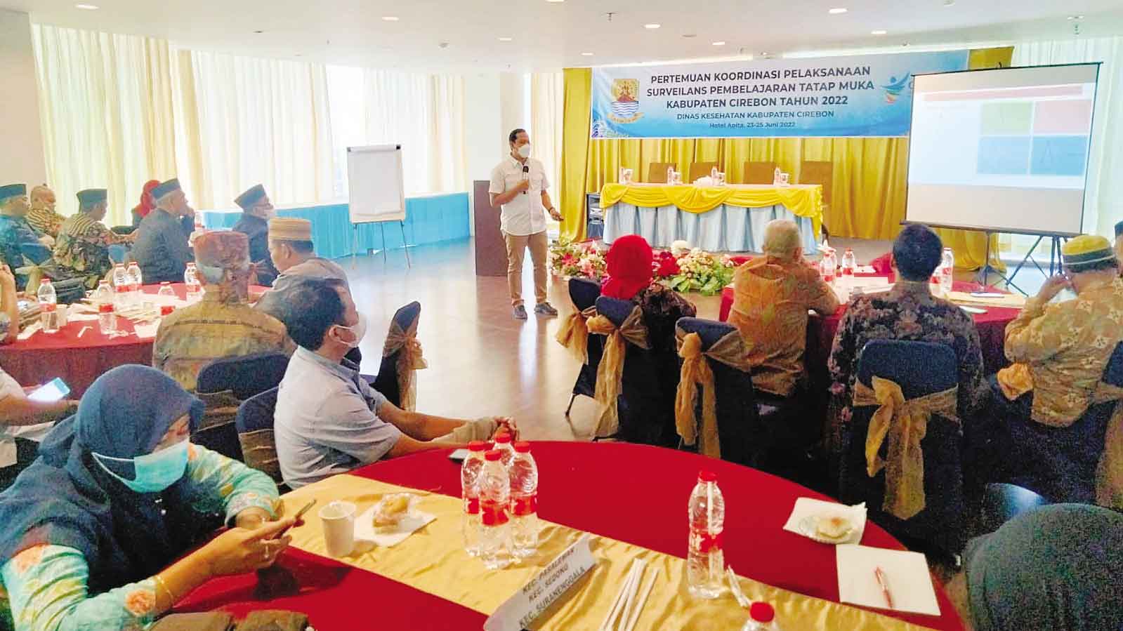 Hal tersebut disampaikan Kepala Dinas Kesehatan Kabupaten Cirebon, dr Hj Neneng Hasanah melalui Sub Koordinator bidang Surveilans, Dendi Hamdi usai menggelar pertemuan Koordinasi Pelaksanaan Surveilans Pembelajaran Tatap Muka (PTM) di Kabupaten Cirebon, Sabtu (25/6/2022).