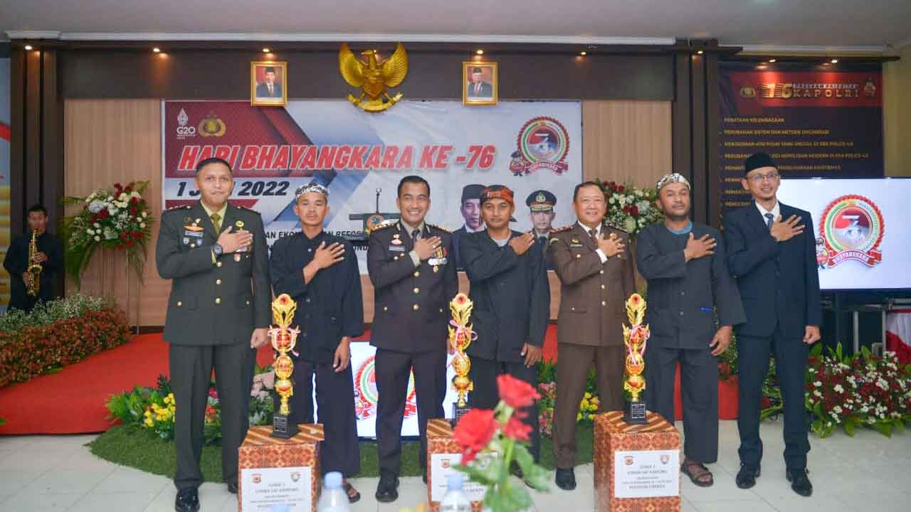 KABUPATEN CIREBON, SC- Upacara Hari Ulang Tahun ke-76 Bhayangkara dilakukan serentak secara nasional dipusatkan di Akademi Kepolisian Lemdiklat Polri, Semarang, Jawa Tengah, dipimpin langsung Presiden Republik Indonesia, Joko Widodo dan diikuti Polda dan Polres seluruh Indonesia secara daring, Selasa (5/7/2022).