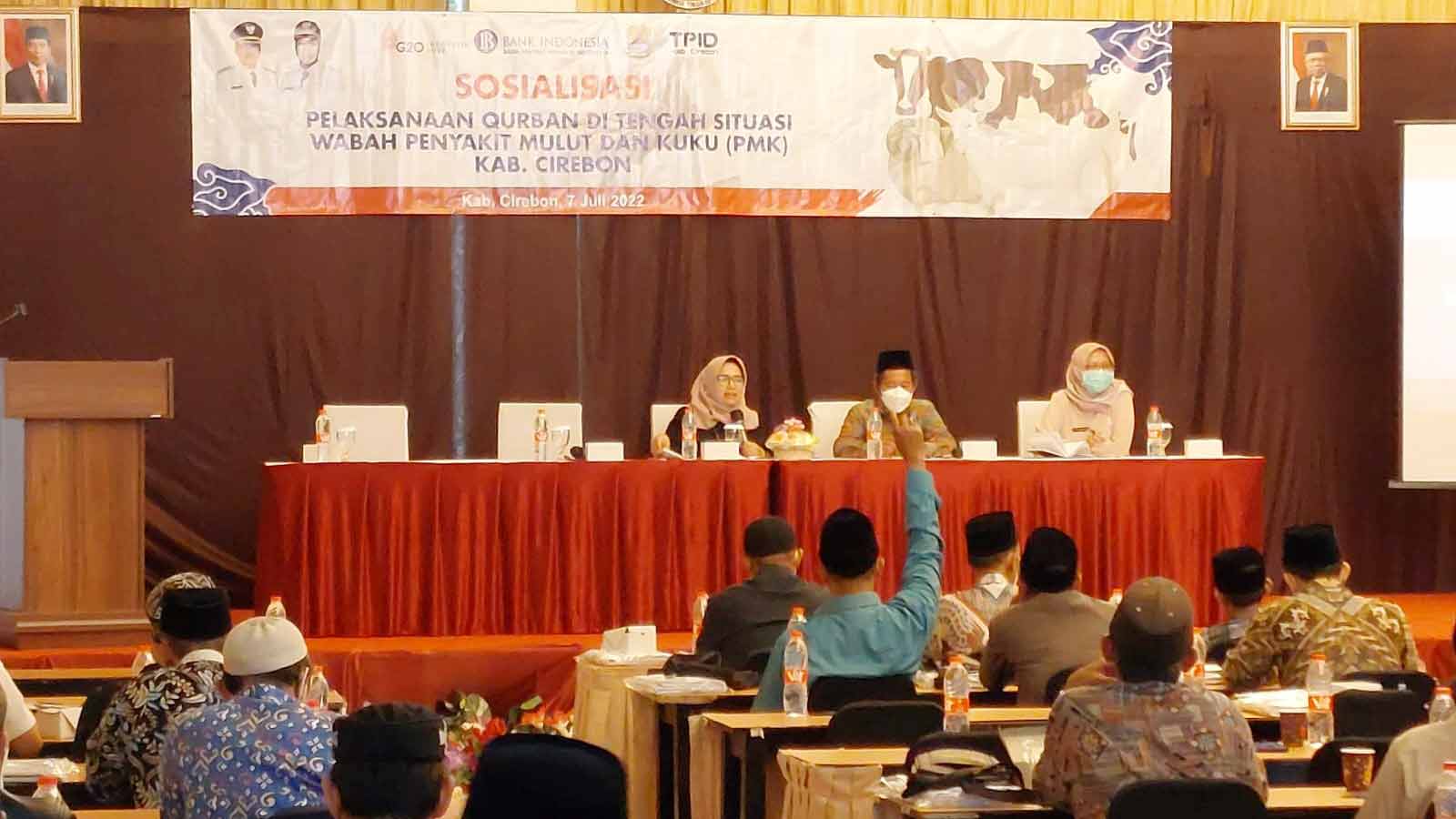 Selain itu, Distan juga menggelar Sosialisasi Pelaksanaan Kurban di Tengah Situasi Wabah PMK Kabupaten Cirebon di salah satu Hotel di Kawasan Kecamatan Kedawung, Kamis (7/7/2022).
